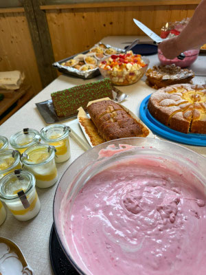 Der Getränketisch wurde gut bewirtet und wer noch etwas Platz hatte nach dem Raclette, konnte sich am Kuchentisch bedienen.
